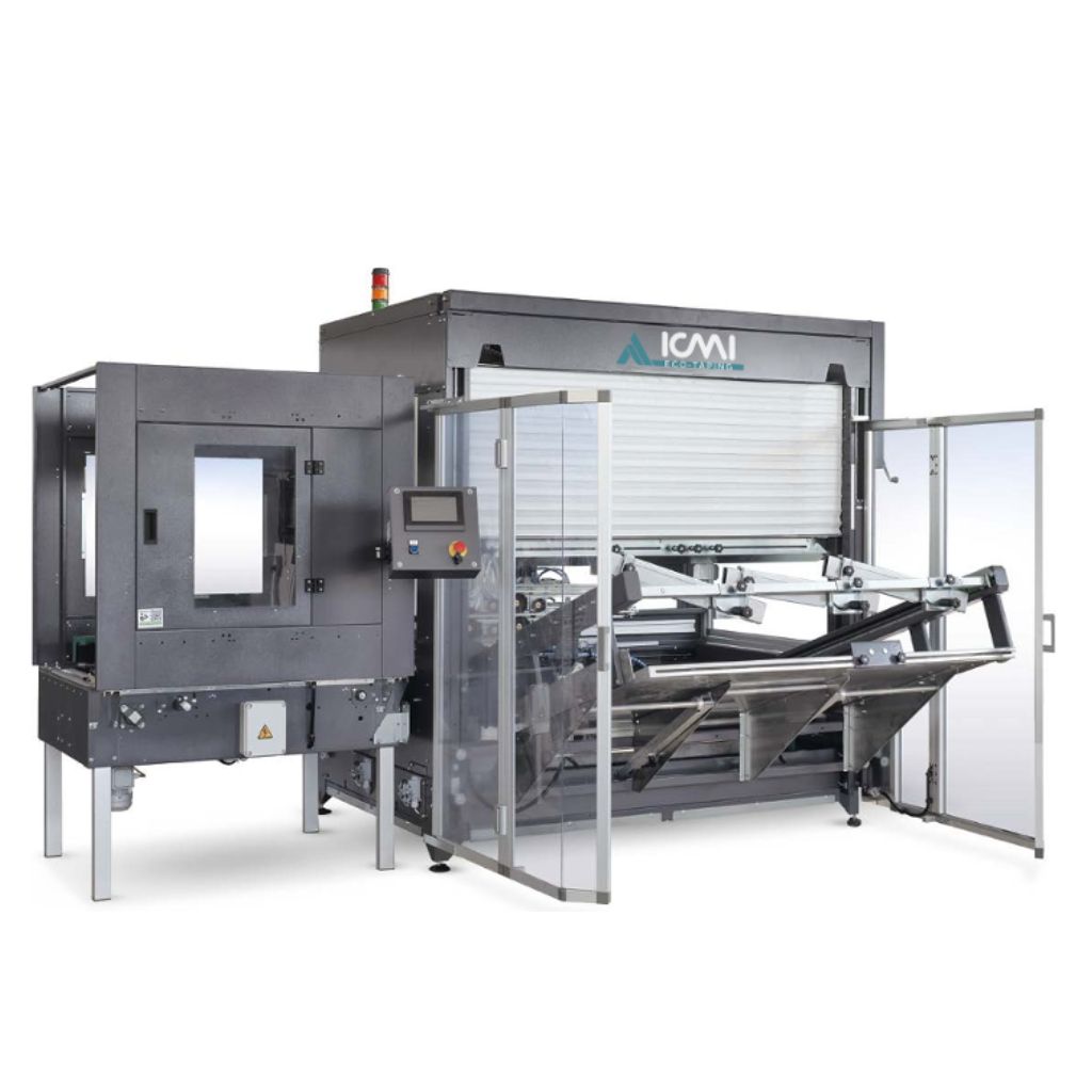 Formatore di scatole automatico che forma le scatole molto grandi lunghe fino a 800 mm prelevandole dal magazzino laterale e ripiegando le quattro falde inferiori. La scatola formata viene nastrata automaticamente con carta gommata o nastro adesivo e avviata alla linea di riempimento. la formatura della scatola, grazie a un sistema brevettato, avviene nel modo più affidabile anche in caso di cartone leggero in quanto qualsiasi interferenza tra le falde è completamente eliminata.